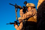 Lance Cpl. Brandon Bowker, a Roberta, Ga., native and rifleman with 1st Battalion, 9th Marines, scans the desert for threats during a firefight with insurgents near the Bari Gul Bazaar, Nad Ali District, Helmand province, Afghanistan, Dec. 4, 2013. Nearly 100 Marines and coalition allies engaged in a prolonged firefight with insurgents while patrolling the area to interdict Taliban movements and weapons caches and gather intelligence around the bazaar. The interdiction force landed by helicopter during the cover of night and began sweeping through the area with the help of Afghan forces and interpreters before engaging Taliban fighters in a firefight that lasted nearly four hours.(Photo By: Cpl. Paul Peterson)