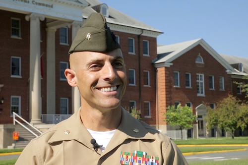 Maj. Ken Parisi, a logistics specialist at Marine Corps Systems Command, talks about his passion for triathlons and how they gave him confidence and made him a better Marine. He recently placed in the top 25 percent of 4,500 competitors at the Ironman World Championship at Nelson Mandela Bay in Port Elizabeth, South Africa. (U.S. Marine Corps photo by Joey Neigh)